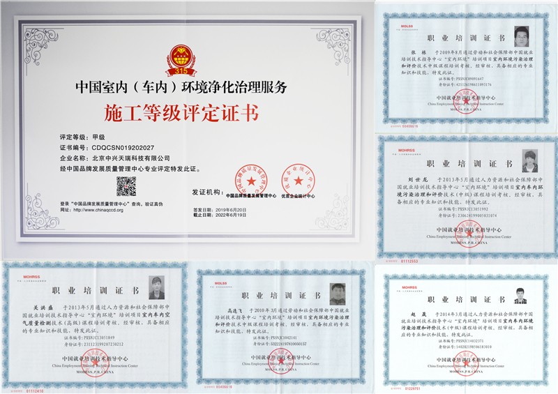 我們由經過專業(yè)培訓并取得資格證書的技術工程師擔任治理施工負責人,面向客戶對效果負責。我公司總經理從2008年開始,擔任人力資源和社會保障部“就業(yè)培訓技術指導中心”頒發(fā)證書的“全國室內環(huán)境檢測治理崗位和職業(yè)資格培訓班”專任講師,為行業(yè)培養(yǎng)了一大批專業(yè)技術人才,得到央視新聞頻道、北京衛(wèi)視、山東衛(wèi)視、青海衛(wèi)視、齊魯網等媒體新聞報道。