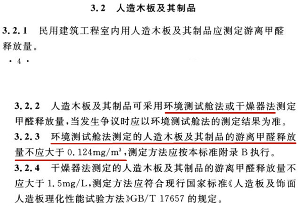 對室內(nèi)裝飾裝修設(shè)計提出了污染控制預評估要求及材料選用具體要求,為室內(nèi)污染治理企業(yè)開展事前治理提供了新的方向。以人造板為例,規(guī)定其甲醛釋放量不應大于0.124㎎/m3,材料甲醛釋放量檢測采用人造板甲醛釋放量測定的環(huán)境測試艙法和干燥器法。