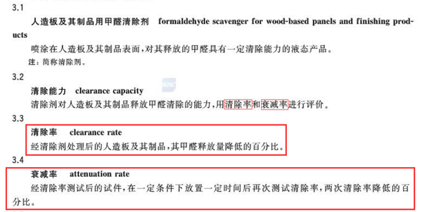 根據(jù)國(guó)家標(biāo)準(zhǔn),驗(yàn)證人造板甲醛清除劑的清除能力有兩個(gè)指標(biāo)非常重要,一個(gè)是測(cè)定24小時(shí)效果的“甲醛清除率”,還有一個(gè)測(cè)定長(zhǎng)期效果的“衰減率”?!八p率”就是在7天之后,再測(cè)一次甲醛清除率,然后把7天后的甲醛清除率與24小時(shí)的甲醛清除率作比較,看7天后清除甲醛的效果降低了多少,計(jì)算出來(lái)的降低比率就是“衰減率”。