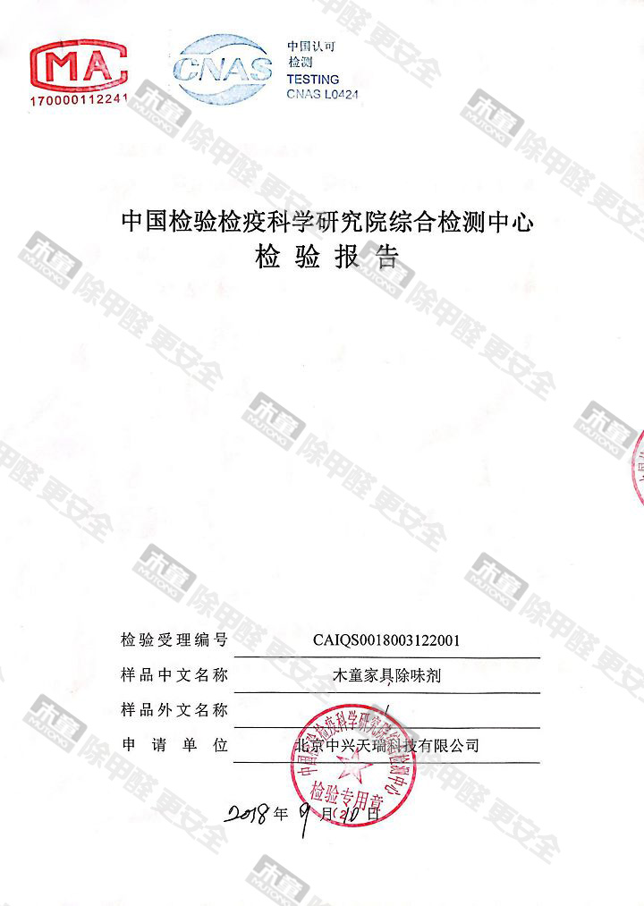 木童除醛2號(hào)三代安全性檢測報(bào)告