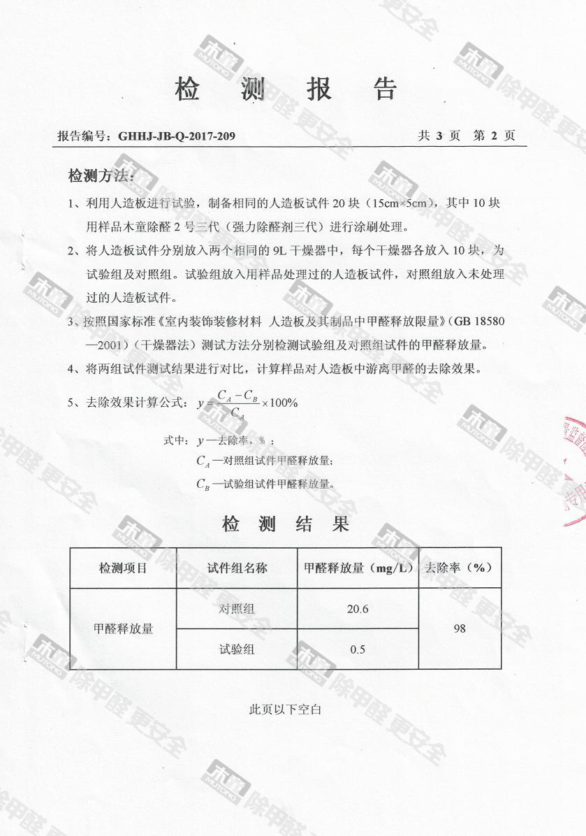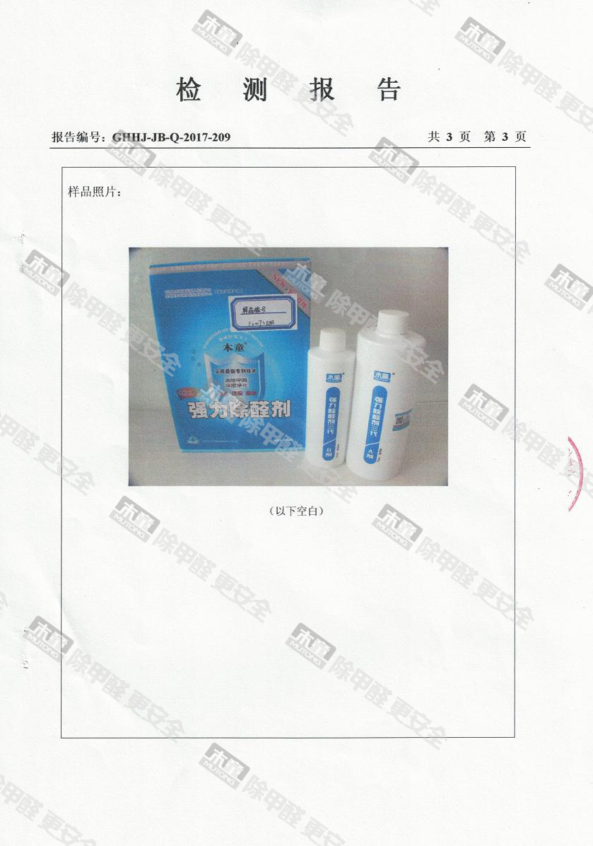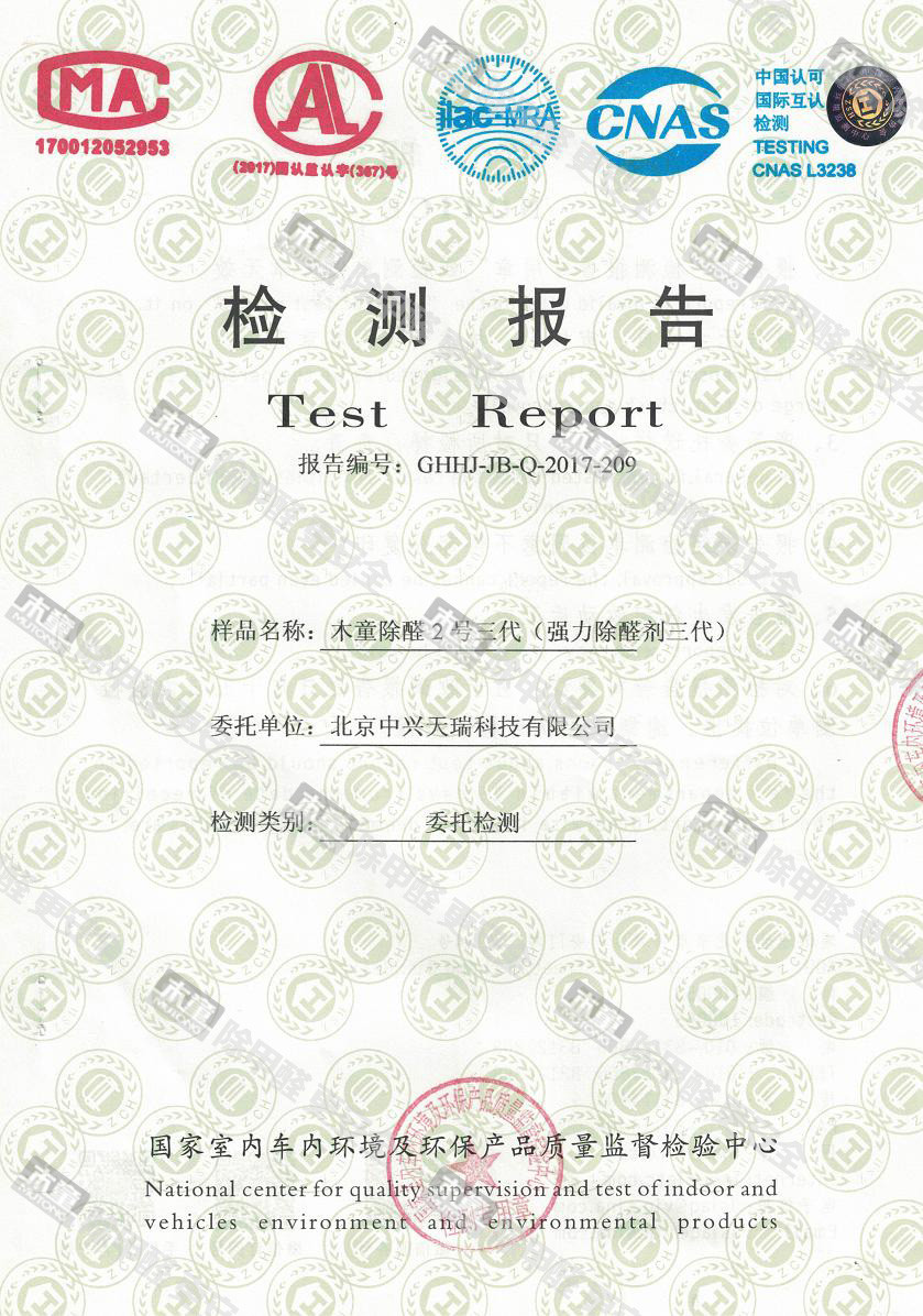 木童除醛2號三代效果檢驗(yàn)報(bào)告2017
