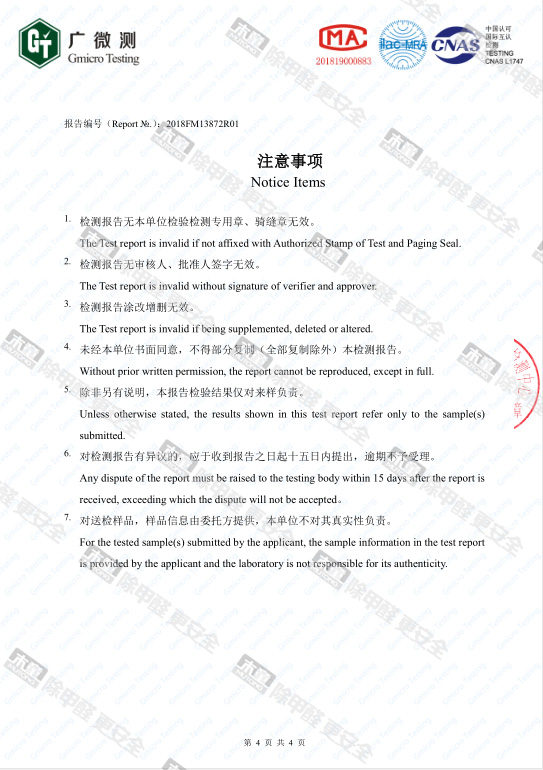 木童家具甲醛清除劑皮膚安全性檢測報告